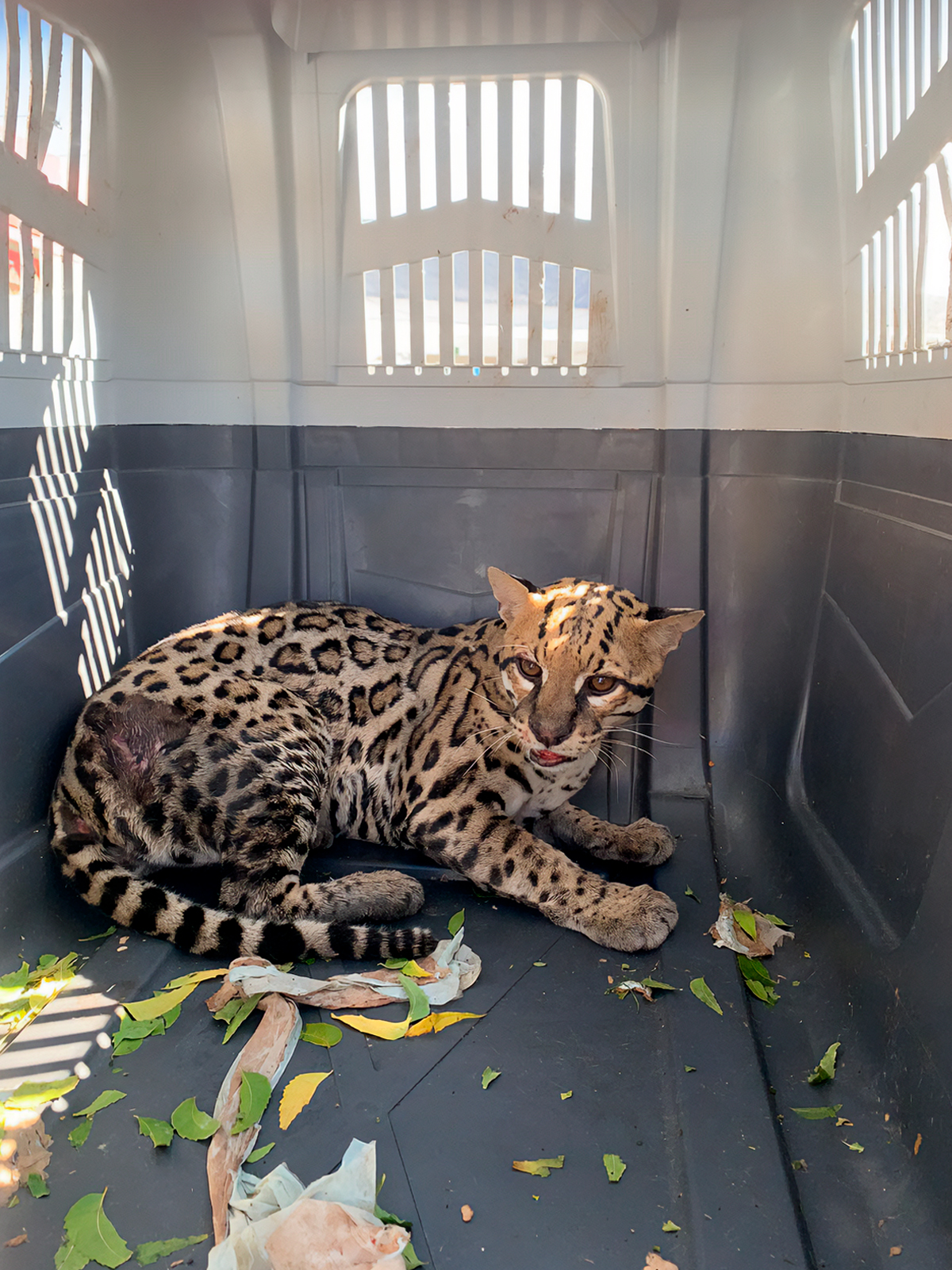 Tras una revisión inicial, veterinarios diagnosticaron al felino con una fractura en la mandíbula, diversas heridas y otros problemas de salud que requerían atención especializada. Debido a la gravedad de sus lesiones, el ocelote fue trasladado a las instalaciones de la Fundación Invictus, una organización dedicada al rescate y rehabilitación de fauna silvestre.